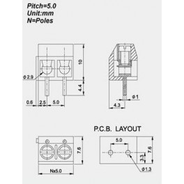 Bornier à vis, 2 contacts 5mm (x4) à souder