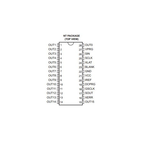 Circuit intégré Driver de 16 LED par contrôle d'impulsions PWM TLC5940NT